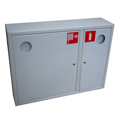 Пожарный шкаф для размещения пожарного крана, рукава и огнетушителя. Вместимость: 1 огнетушитель, 6 кг. Размер: 840х650х200