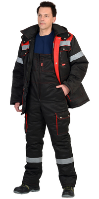 Куртка с капюшоном, полукомбинезон. Куртка с капюшоном, полукомбинезон. Ткань верха: «Оксфорд 210» (100% ПЭ, пл. 95±10 гр/м2 , PU). Ткань подкладочная; «Тафета 190» (100% ПЭ, пл. 55±10 гр/м2 ). Утеплитель: синтепон. Куртка: 450 гр/м2 . П/к: 300 гр/м2 . Класс защиты- 2 класс. Цвет- Черный с темно-синим. Светоотражающая полоса 50 мм. 3 климатический пояс.