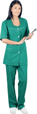 Ткань смесовая, 65%-п/э, 35%-хлопок, пл.130г/м.кв, блуза с коротким рукавом, брюки, цвет-белый с синим, ГОСТ 9896-88