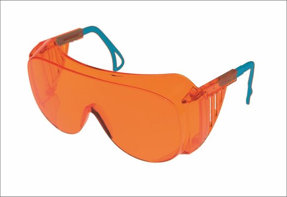 Защитное пластиковое стекло оранжевого цвета из Plexiglas снижает утомление глаз, защита от УФ-излучений до 570 нм. Регулировка угла наклона стекла и длины заушников. ГОСТ Р 12.4.230.1-2007