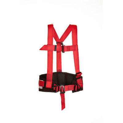 Страховочная система с наплечными и набедренными лямками, со стропом из полиамидного каната 1,45м, с амортизатром, кушаком и карабином К1. Количество точек крепления 1: одна, на наплечных лямках со стороны спины (D-кольцо).ГОСТ Р ЕН 361-2008
