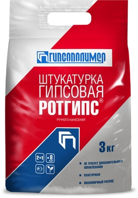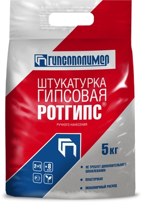 Штукатурная смесь на основе гипсового вяжущего с добавками. Предназначена для высококачественного оштукатуривания вручную потолков и стен с обычным твердым основанием, а также поверхностей из пенополистирола внутри помещений с нормальной влажностью. Толщина слоя минимальная - 5 мм, максимальная - 30мм Расход - 8,5 кг/м2