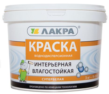 Краска интерьерная влагостойкая супербелая 3кг ЛАКРА