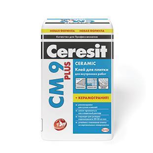 Клей для плитки Ceresit CM 9 Plus рекомендован для укладки керамогранитной и клинкерной плитки (30х30 см) на полах без подогрева внутри помещений, подходит для крепления керамической плитки (30х30 см) на полах и на стенах внутри помещений и может использоваться в качестве кладочного раствора при кладке кирпича.