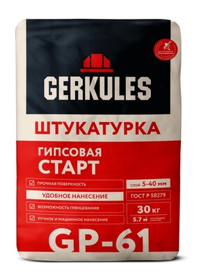 Штукатурная смесь на основе гипсового вяжущего с добавками. Предназначена для высококачественного оштукатуривания вручную потолков и стен с обычным твердым основанием, а также поверхностей из пенополистирола внутри помещений с нормальной влажностью. Толщина слоя минимальная - 5 мм, максимальная - 30мм Расход - 8,5 кг/м2