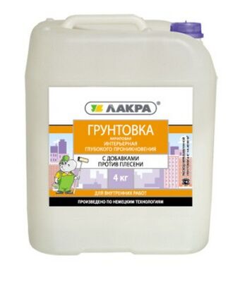 Грунтовка интерьерная глубокого проникновения против плесени 4кг Лакра