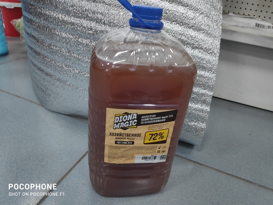 «Техническое мыло» предназначено для удаления жиро-масляных загрязнений в процессах жидкостной обработки любых поверхностей. Техническое мыло представляет собой жидкость, состоящую из смеси поверхностно-активных веществ и активных добавок, усиливающих моющие свойства мыла. Назначение : Для стирки спец. одежды, мытья двигателей,промывки деталей.Применяется в качестве смачивателя. Способ : развезти в воде в соотношении 1:1000.