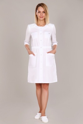 ЦВЕТ: Белый. ТКАНЬ - TC, пл. 120 г/м2. СОСТАВ: 65%-полиэстер, 35%-хлопок¶ВИД ЗАСТЕЖКИ - Кнопки. Длина рукава - 3/4.