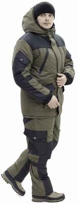 Куртка, полукомбинезон. Ткань: Таслан. Цвет: Хаки. Плотность: 180 гр/м2. Состав ткани: 100% полиэстер. Утеплитель - синтепон 250-270 г/м2 . Температурный режим до -25 С.