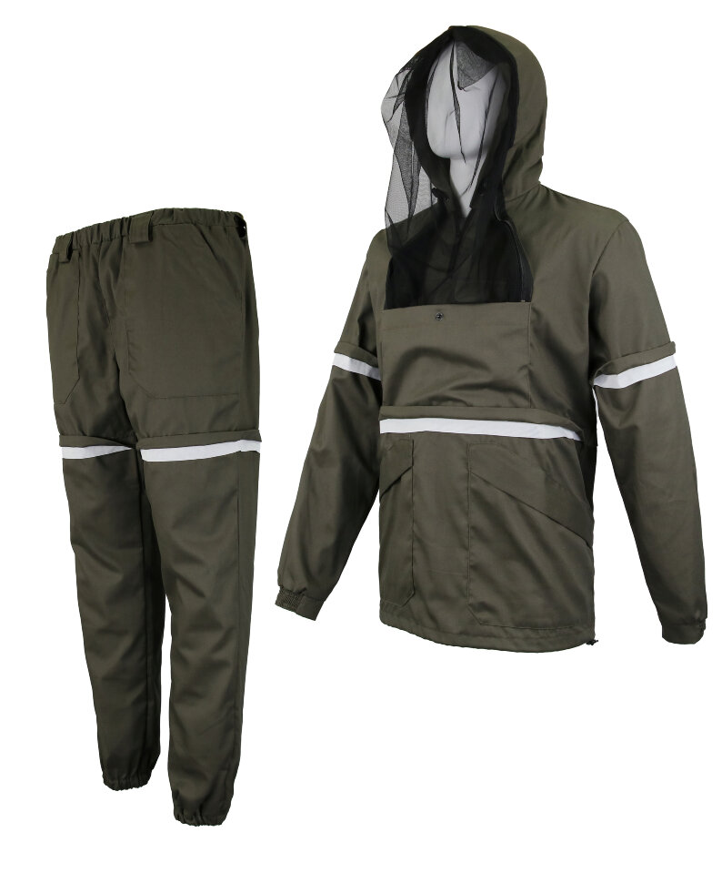 Основная ткань: Twill Peach. Состав: 65% Полиэстер; 35% Хлопок. Плотность: 200 гр./м2. Пропитка: BO (WR). Костюм состоит из куртки-анорак с капюшоном и брюк прямого кроя. Капюшон регулируется по объему, а съемная вставка из противомоскитной сетки застегивается на молнию, или убирается в карман на груди. Костюм оснащен специальными ловушками для клещей – на рукавах, куртке, брюках. Пояс брюк собран на широкую эластичную резинку, есть шлевки для ремня. Низ брюк на резинке.
