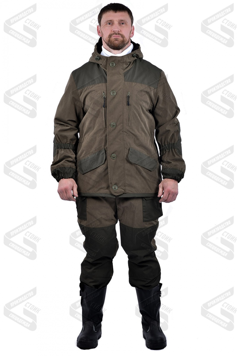 Ткань: Исландия, 195 гр./кв.м + отделка из смесовой ткани (рип-стоп); Утеплитель: флис, 100% ПЭ; Цвет: основной – хаки, отделка – зеленый, подкладка — черный; Защитные св-ва: З, Ми.
