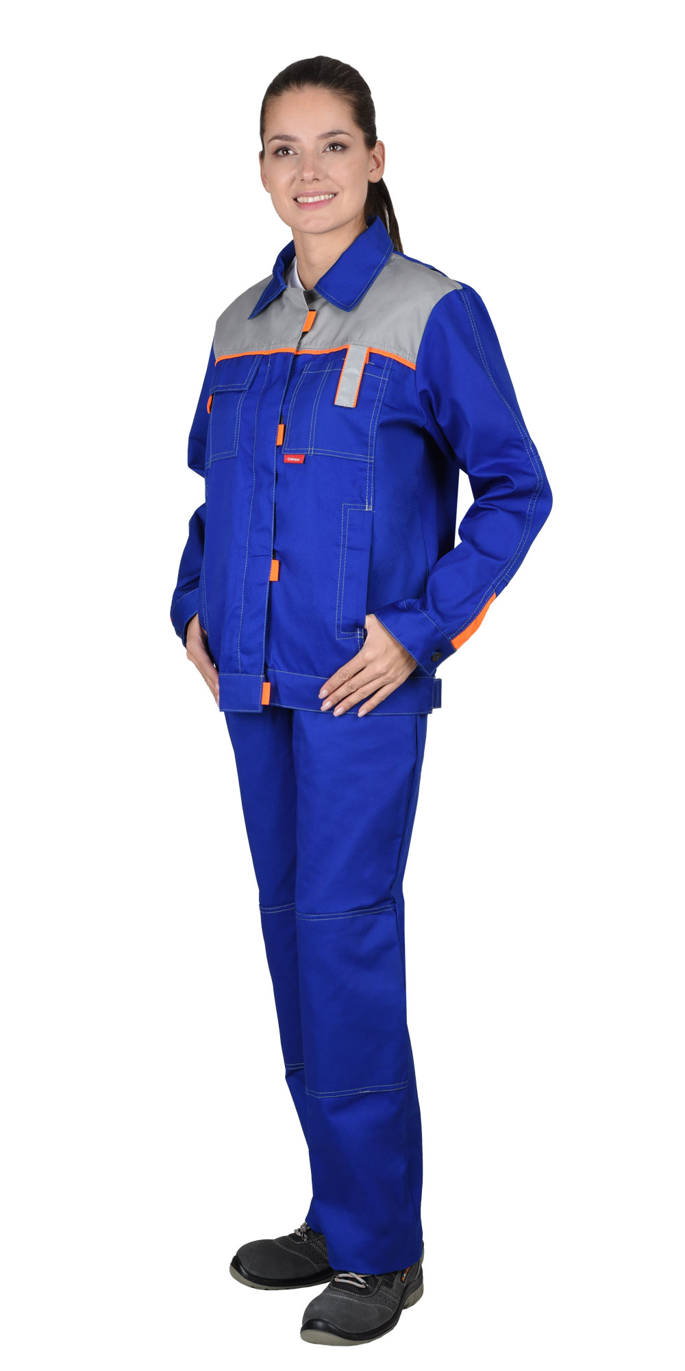 Куртка, брюки, тк.смесовая, состав: 65% ПЭ, 35% ХБ , плотность 215 г/кв.м. цвет - васильковый со светло серым с красной отделкой, ГОСТ 27575-87. Световозвращающий элемент: 25 мм