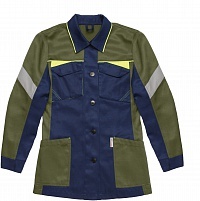 Основной материал:смесовая, 210 гр/м2, ВО-пропитка¶Материал накладок:"Oxford 600D" 100% п/э; 230 гр/м2 с ВО¶- Вентиляционные отверстия (люверсы) для поддержания комфортного микроклимата¶- Усиленные накладки на локтях из прочной ткани для защиты от истирания¶- Анатомические вытачки на локтях для свободы движения¶- Объемные нагрудные карманы с клапанами для надежной защиты личных вещей¶- Светоотражающие полосы для безопасной работы в темное время суток