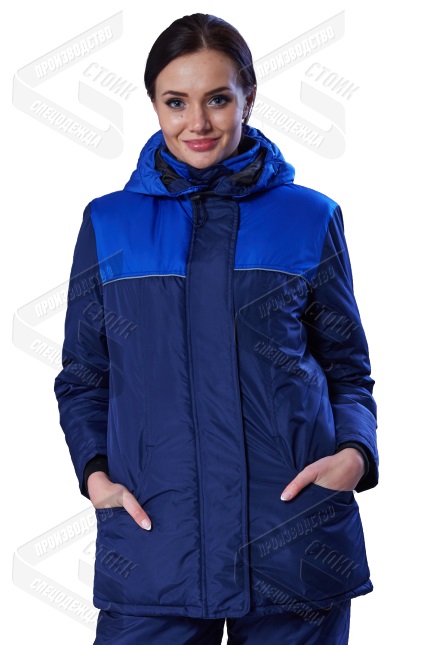 Куртка удлиненная, с застежкой на молнию, с ветрозащитным клапаном. Ткань: Дюспа - 100% полиэстер. Утеплитель: синтепон пл. 350 г/м. Подкладка: нейлон. Цвет: синий с васильком¶