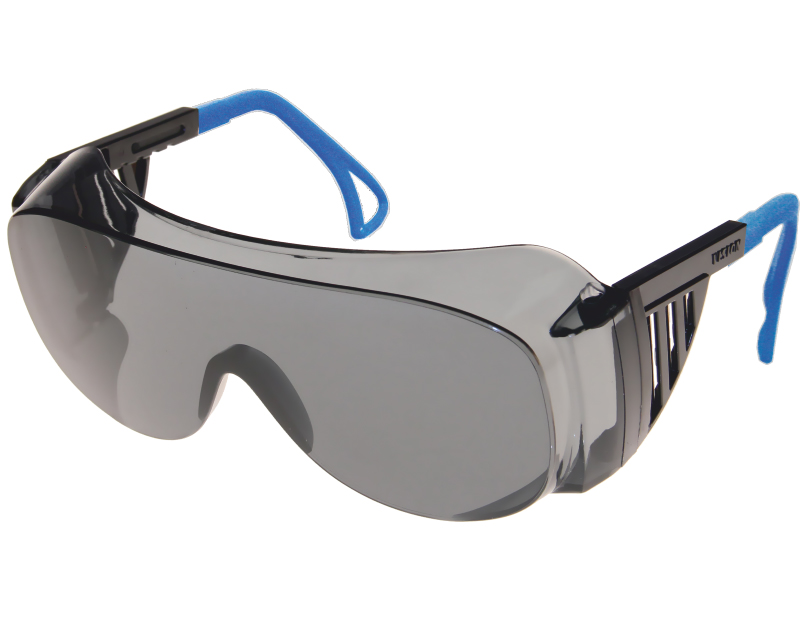 Защитное пластиковое стекло-светофильтр из Plexiglas градационный шифр 5-3,1 .Для вспомогательных работ при электросварке в цехах и на открытых площадках. Регулировка угла наклона стекла и длины заушников. Светофильтр тип В. ГОСТ Р 12.4.230.1-2007