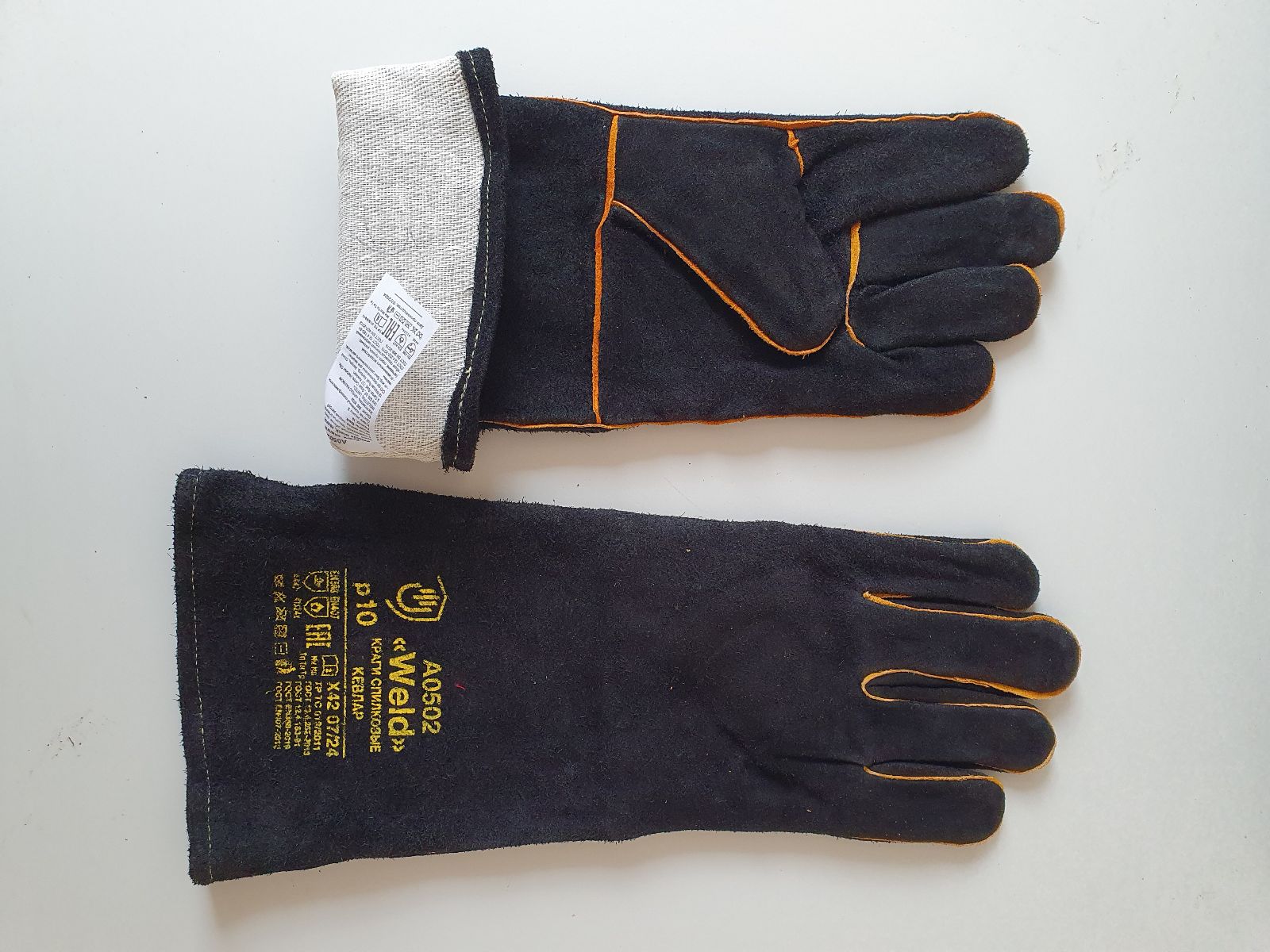 Краги спилковые пятипалые на подкладке А0502 черные 41см Кевлар р 10