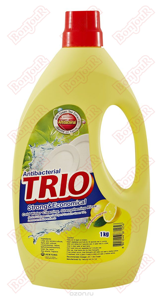 Экологичное средство, подходит для овощей и фруктов. Растворяет жир даже в холодной воде. Средство для мытья посуды с экстрактом лимона Trio расходуется очень экономично, не раздражает кожу и позволяет с комфортом поддерживать чистоту на кухне.