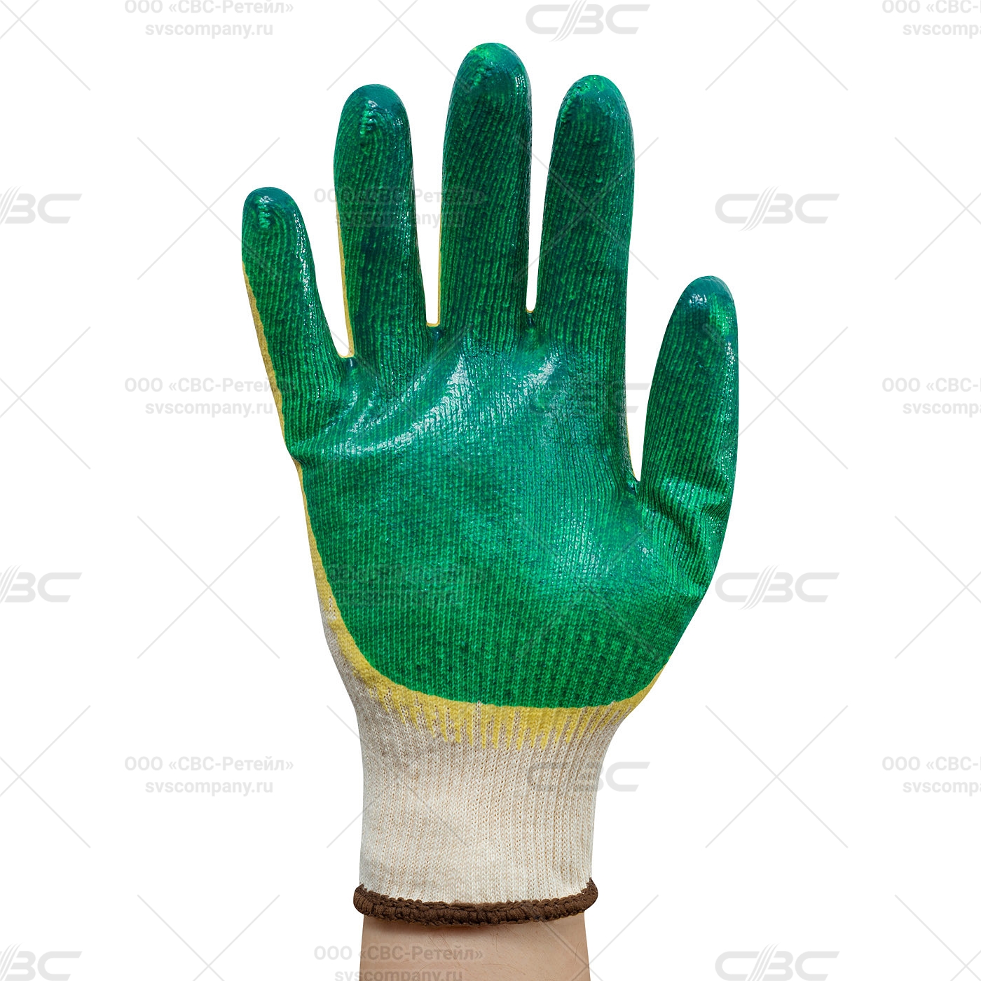 Перчатки х/б двойной латексный облив ЛЮКС 13 класс, зеленые (Минпромторг)