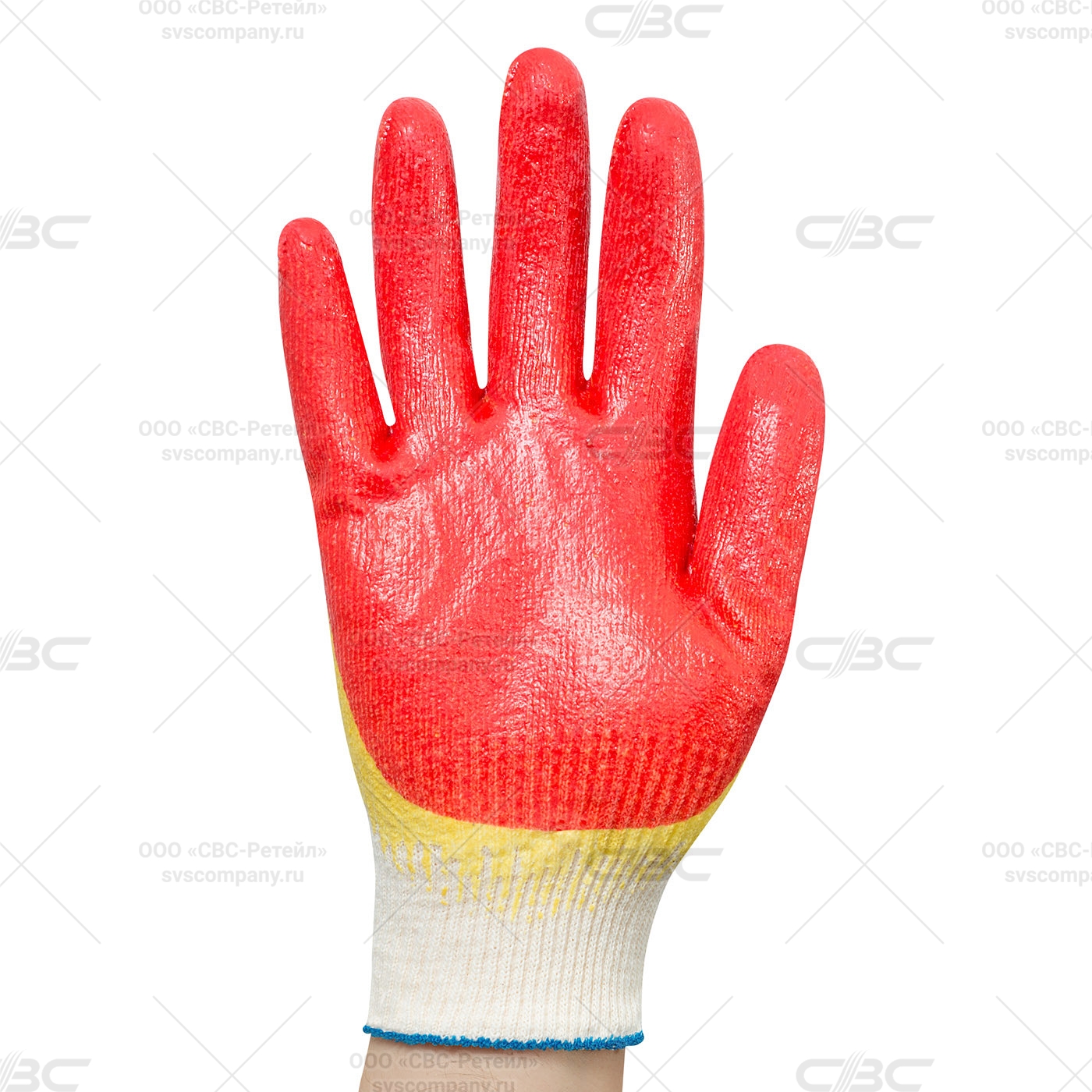 Перчатки х/б двойной латексный облив 3/4, 13 класс, красные (Минпромторг)