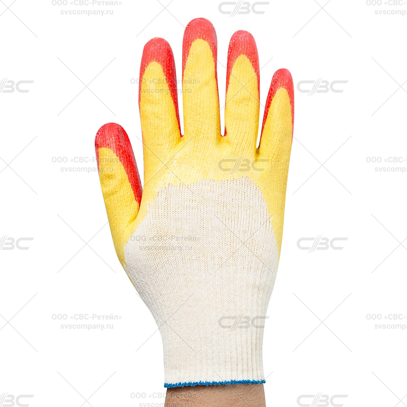 Универсальные перчатки из натурального хлопка с покрытием ¾ из натурального латекса, эталон на рынке обливных перчаток. Особенностью модели является покрытие ¾, за счет чего лучше защищается тыльная сторона руки. Латексное покрытие препятствует проникновению влаги и грязи, обеспечивает высокую износостойкость. Трикотажная х/б основа 13-го класса вязки. Покрытие ладони и части тыльной стороны двойным натуральным латексом