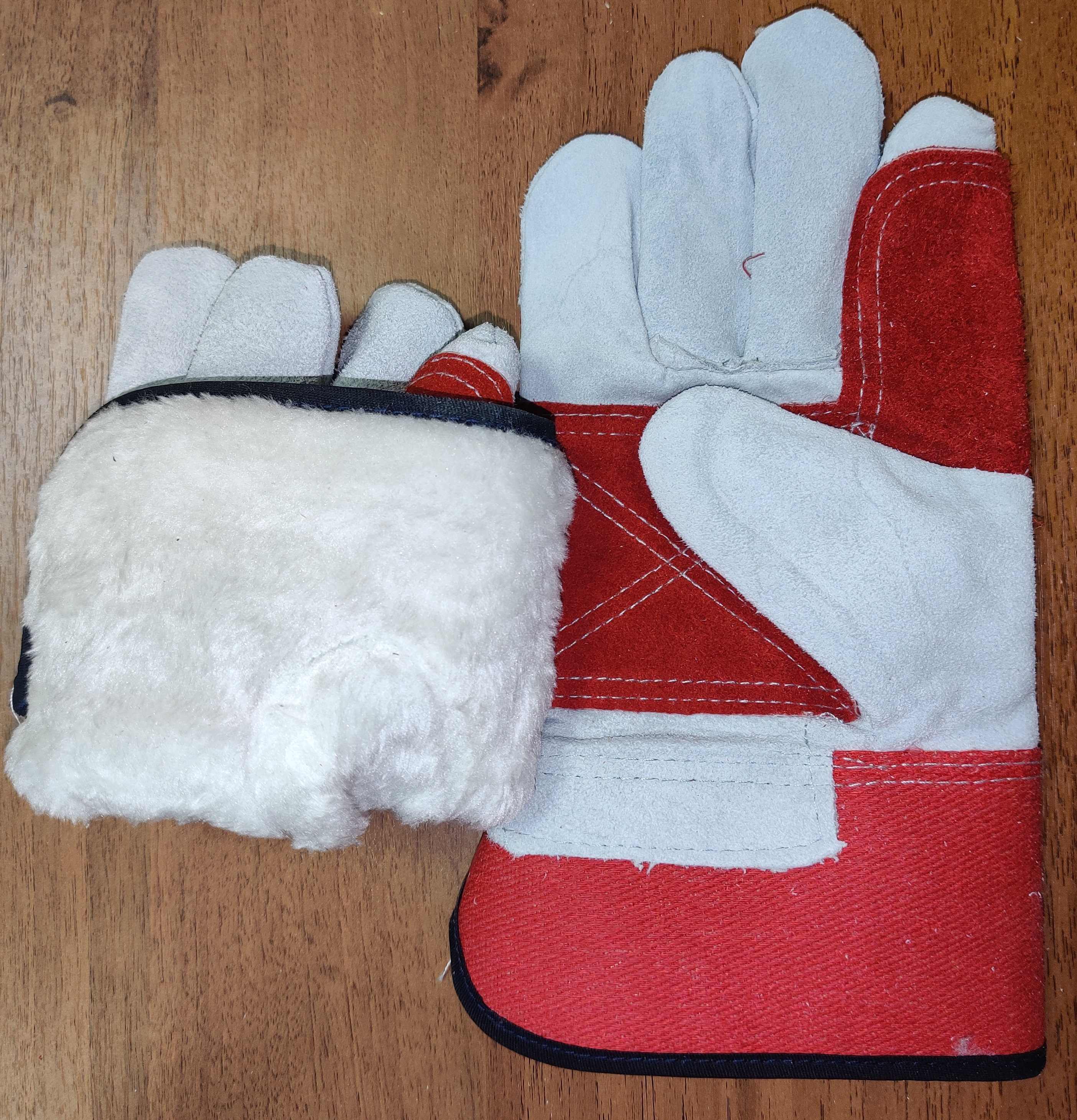 Изготовлены из свиного спилка. Тыльная сторона и манжеткрага выполнены из хлопка. Утеплены подкладкой из искусственного меха.