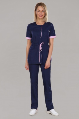 ЦВЕТ Темно-синий, серый . ТКАНЬ -TC, пл. 120 г/м2. СОСТАВ: 65%-полиэстер, 35%-хлопок. ВИД ЗАСТЕЖКИ- Кнопки. Длина рукава- Короткий