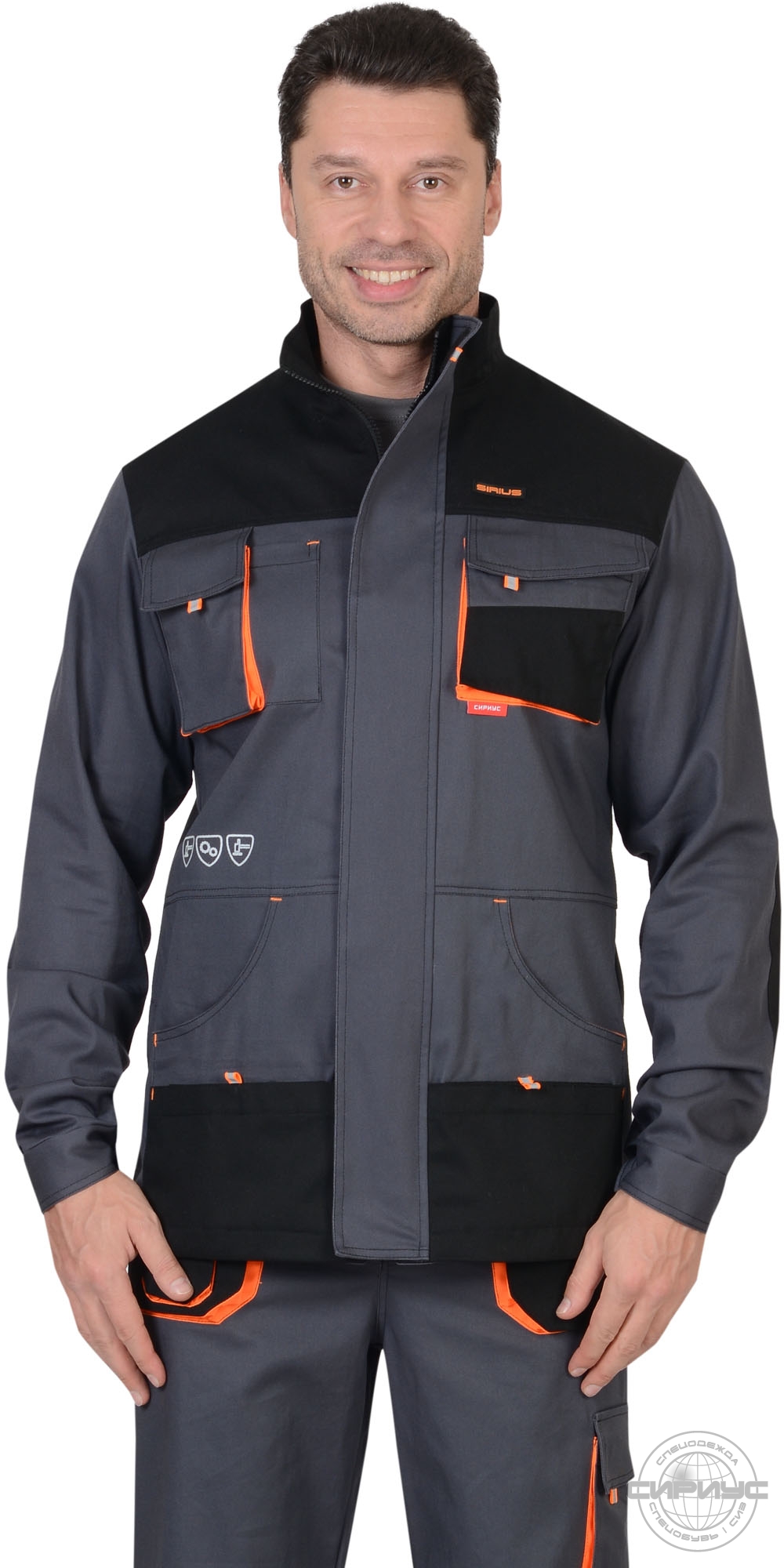 Куртка прямого силуэта, с центральной застежкой на «молнию», с воротником стойка , с ветрозащитной планкой, с притачными манжетами , с накладными объемными верхними карманами с клапанами, с нижними объемными карманами. Тк."Стрейч" 98% х/б, 2% спандекс, плотность 250 г/кв.м
