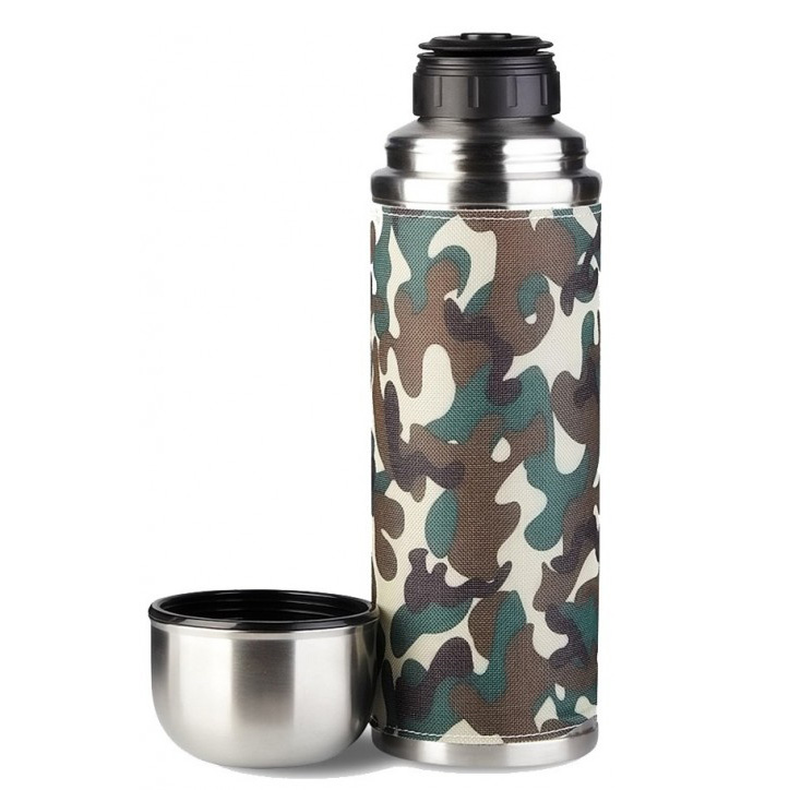 Оплётка "камуфляж" не только отлично выглядит, но и приносит практическую пользу. Она защищает термос от отпечатков, а ваши руки - от примерзания в холодную погоду. А если вам помыть термос - оплётка легко снимается.
