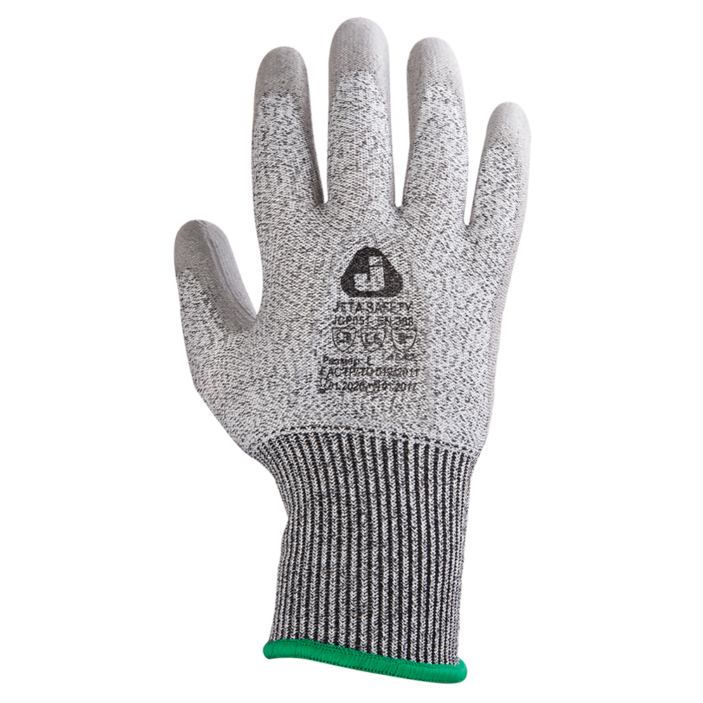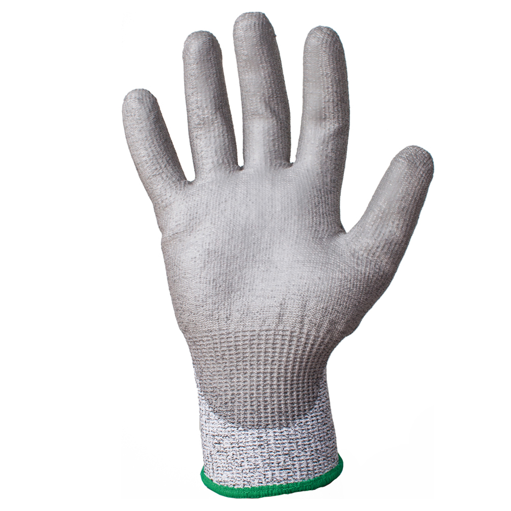 Защитные промышленные перчатки от порезов (5 класс) с полиуретановым покрытием. Бесшовная перчатка выполнена из высокопрочных нитей поэлитилена (13 класс вязки). Эластичная манжета надёжно удерживает перчатку на запястье. Улучшенный воздухообмен обеспечивается благодаря отсутствию покрытия на внешней стороне ладони.