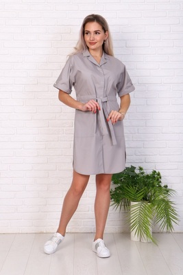 ЦВЕТ- Серый¶ТКАНЬ - TC, пл. 120 г/м2¶СОСТАВ - 65%-полиэстер, 35%-хлопок¶ВИД ЗАСТЕЖКИ - Кнопки¶Длина рукава - Короткий. Практичный и модный женский медицинский халат отлично подойдет для работников больниц, аптек, салонов красоты, поликлиник. По линии талии халата настрочены кулиски, внутри которых вставлен пояс, что позволяет подчеркнуть талию. Высокое содержание хлопка в составе ткани позволяет телу «дышать». Халат на кнопках что позволяет быстро и легко его застегнуть. Имеются два вместительных кармана. Женский халат выполнен из смесовой ткани «ТиСи»: 35% - хлопок, 65% - полиэстер, что гарантирует Вам высокую прочность, комфорт, удобство, легкость в уходе.