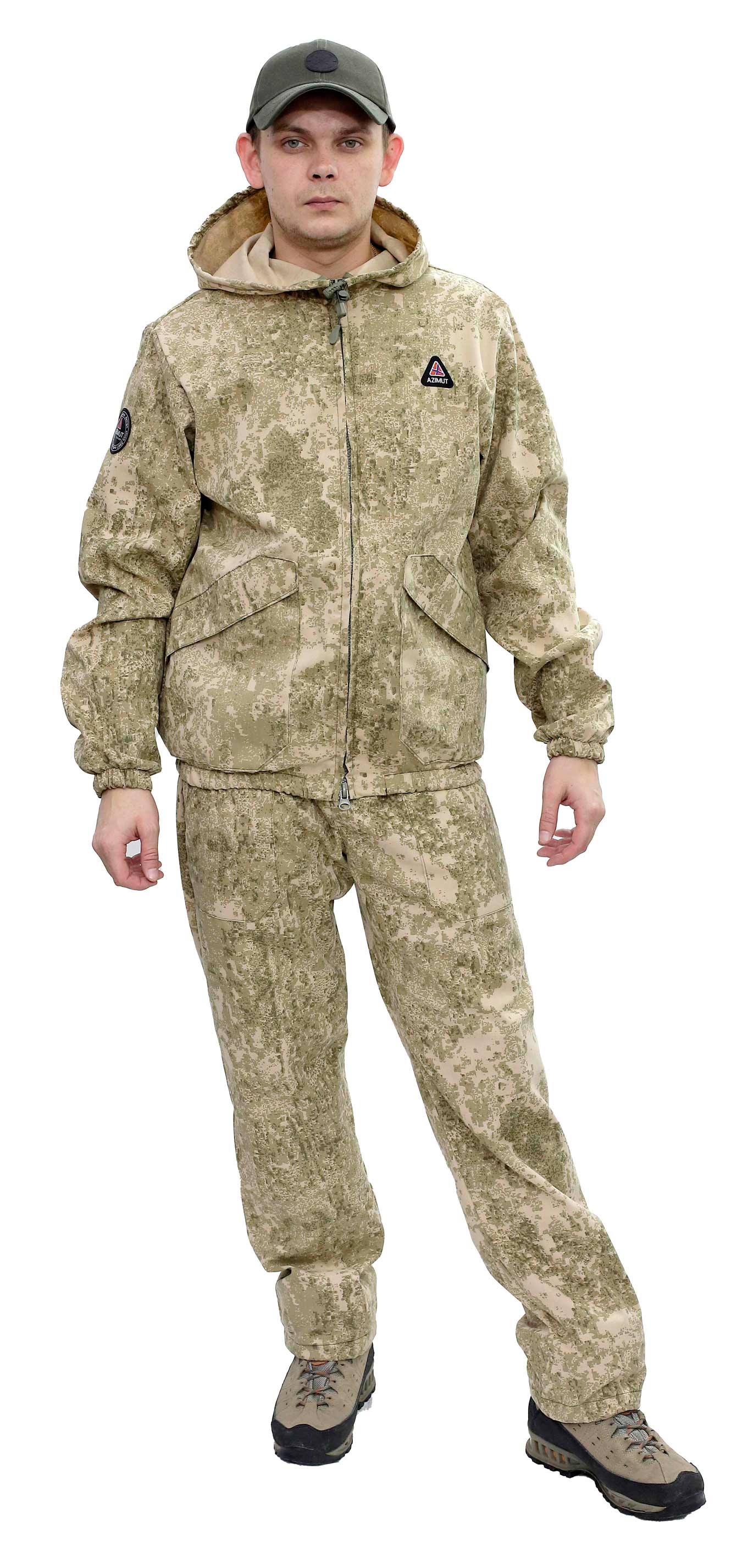 Куртка,брюки. Модель на резинке. Куртка 2 накладных кармана с клапанами. Без москитной сетки. Регулировка по капюшону. Регулировка низа брюк. Брюки пояс на резинке. Рукава на резинке. Шлевки для ремня. Брюки 2 накладных кармана. Ткань смесовая TWILL, Состав: 65% ПЭ, 35% ХБ, плотность 210гр/м2.