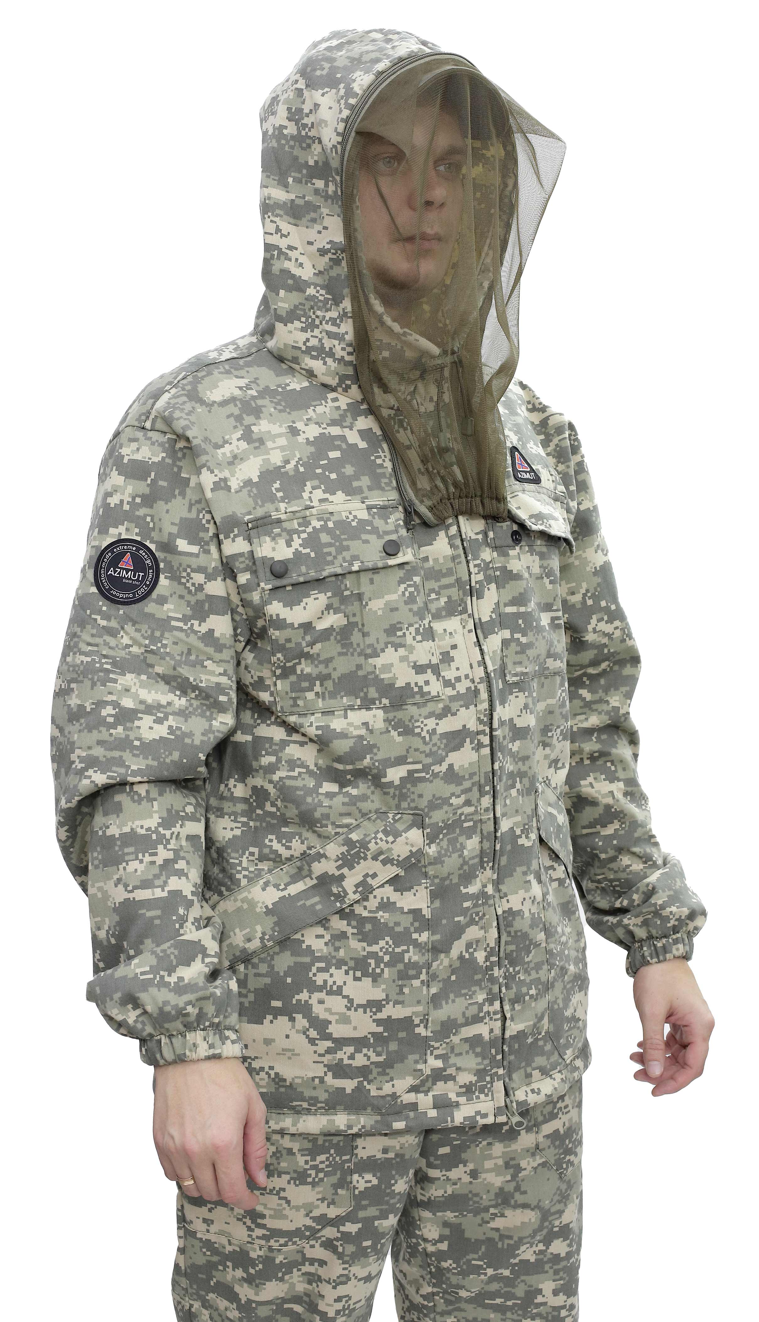 Прямая модель. Куртка 4 кармана. В одном из карманов москитная сетка. Молния 2 бегунка. Регулировка по овалу лица на капюшоне. Утяжка по низу куртки. Регулировка низа брюк:прямая брючина- волан. Брючный пояс на резинке. Шлевки для ремня. Брюки 2 кармана. Ткань смесовая TWILL, Состав: 65% ПЭ, 35% ХБ, плотность 210гр/м2.