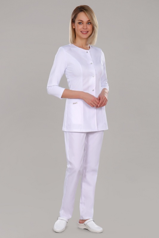 ЦВЕТ- Белый¶ТКАНЬ - CVC/трикотаж, пл. 155 г/м2 / 240 г/м2¶СОСТАВ - 40%-пол, 60%-хл./73%-хл., 22%-пол, 5%-эластан¶ВИД ЗАСТЕЖКИ - Кнопки¶Длина рукава - 3/4