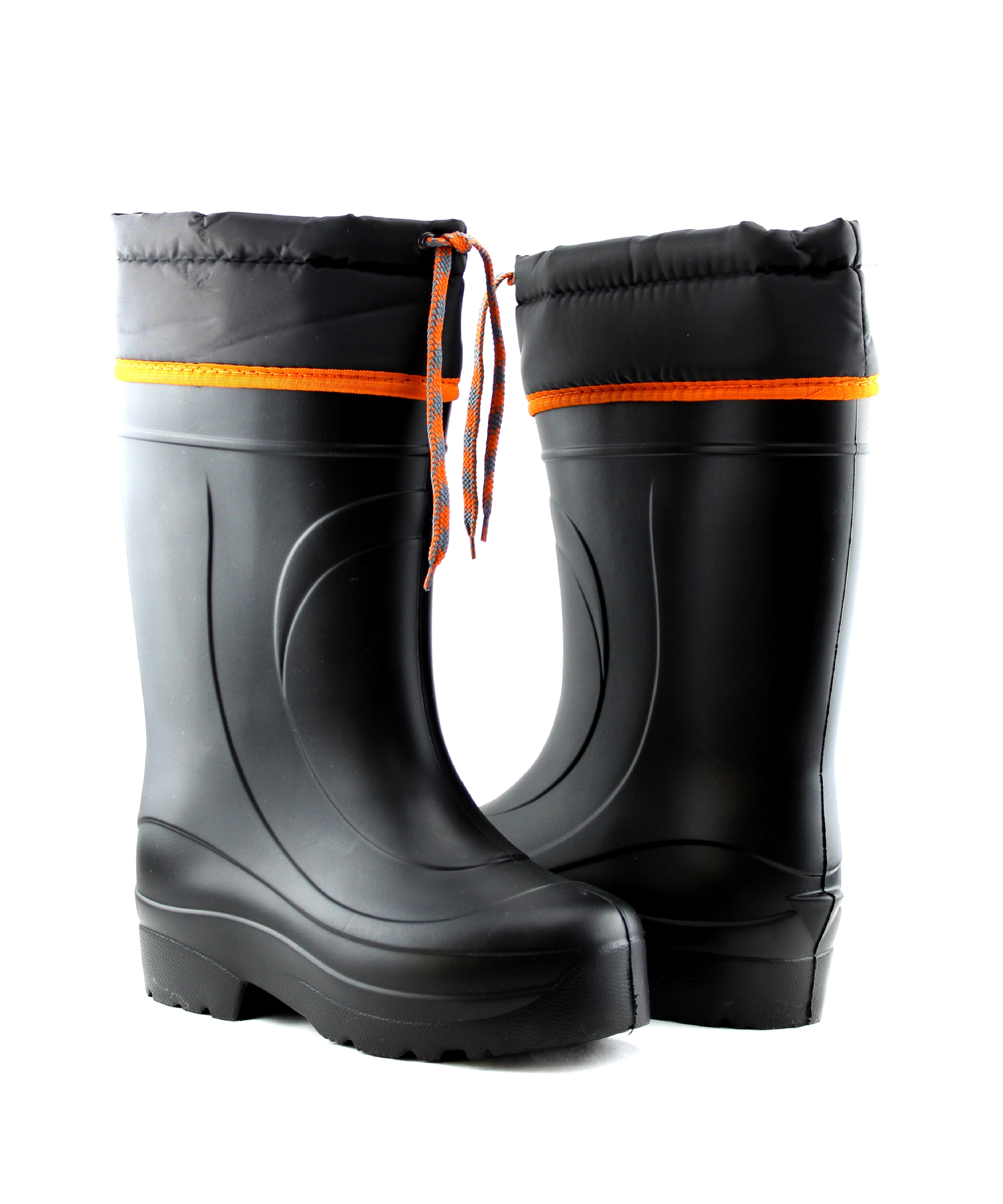 Сапоги из ЭВА утепленные, температурный режим до - 60° С. Съемный 5 слойный чулок: полиэфирное волокно, металлизированная фольга, мембранная сетка, мех на трикотажной основе с содержанием шерсти 20%, п/э пл. 600