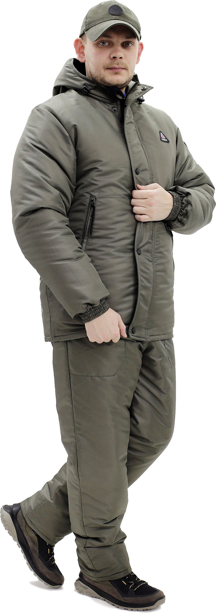 Прямая модель. Куртка три слоя утеплителя. Капюшон не отстегивается. Молния Трактор-8мм два бегунка. На куртке два больших кармана + внутри один карман на молнии . Полукомбинезон два кармана, утеплитель двухслойный. Ткань мембранная Таслан пл. 150 г/кв.м, 100% полиэфир. Влагостойкий костюм, показатель мембраны 5000/5000 мм. Температура в активном режиме -35С.