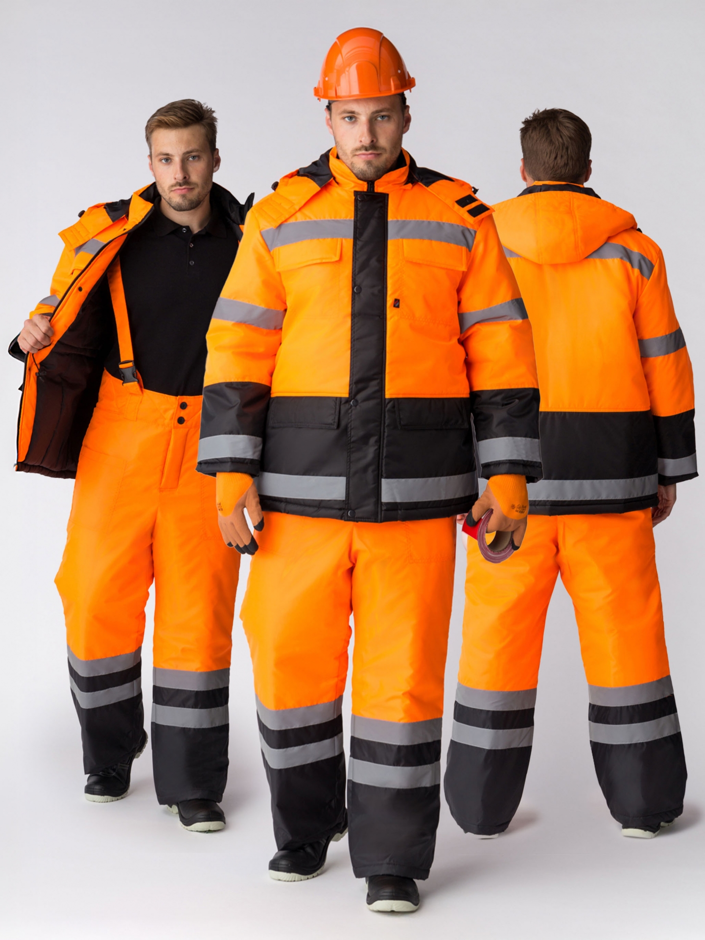 Комплектность: Куртка, брюки. Основной материал: Ткань "Оксфорд" 100% полиэстер, плотность 80-90 гр/м2, ВО-пропитка Утеплитель: "Синтепон" 360 гр/м2 спинка и полочки, 240 гр/м2 рукава и брюки, 120 гр/м2 капюшон Материал подкладки: 100% п/э Климатический пояс: I, II, III, особый. Костюм соответствует 3 классу защиты. Страна производства: РОССИЯ КУРТКА: - комбинированная прямого силуэта со светоотражающими полосами центральная застежка-молния защищена утепленной ветрозащитной планкой, фиксирующейся на ленте 'велькро регулируемый отстегивающийся капюшон трикотажные манжеты на запястьях накладные нагрудные и боковые карманы с клапанами на ленте 'велькро' БРЮКИ: - комбинированные со светоотражающими полосами на регулируемых по длине бретелях широкий утепленный пояс два передних накладных кармана