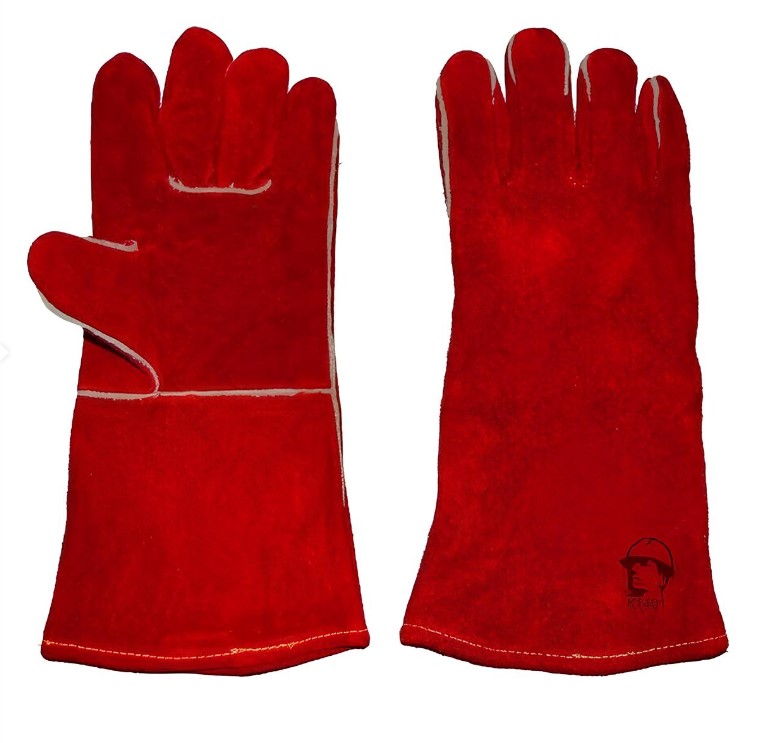 Краги спилковые (толщина 1,1- 1,2мм), пятипалые, красного цвета.