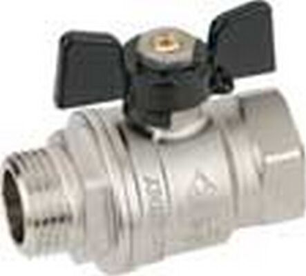 Кран шаровой латунный, полнопроходной, резьбы наружная - внутренняя по ISO 228/1 Ручка - "бабочка" из алюминия Корпус: латунь CW617N кованная, пескоструенный, никелированный Шар: латунь CW617N кованная, полированный хромированный Резьбы: ISO 228/1 Управление: рычаг из алюминия UNI-EN 1706, покрытие - эпоксидная эмаль черного цвета Уплотнения шара: 2 седла из фторопласта-4/PTFE Шток: латунь CW614N (взрывобезопасное исполнение) Уплотнения штока: 1 из фторопласта-4/PTFE, 1 кольцо из бутадиен-нитрильного каучука/NBR Диапазон температур: от -20°C до +120°C Рабочее давление: от 30 до 50 bar