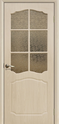 Полотно остекленное ПВХ Классика 700*2000мм дуб беленый (наличник полукруг, деталь короба, петли) Н1