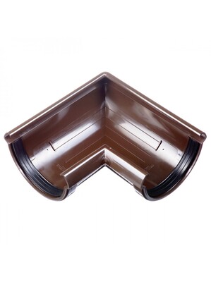 Угловой элемент 90гр. устанавливается на внешних и внутренних углах кровли и предназначен для соединения желобов под углом 90гр. в целях изменения направления движения воды.
