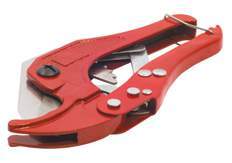 Ножницы для труб 16-40 применяются для резки любых пластиковых труб при строительстве систем водоснабжения, отопления, систем теплых полов. Ножницы для резки полипропиленовых труб имеют удобную рукоятку, благодаря которой их просто держать в руке, ножницы не выскальзывают и не перекашиваются. Крепкое хромированное лезвие легко режит любые виды армированных и неармированных полипропиленовых труб, полиэтиленовых труб, металлопластиковых труб. Резак для полипропиленовых труб имеет трещеточный механизм, который исключает применение больших усилий на ножницы при резке труб.