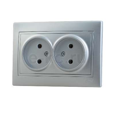 Розетка 2-м СП 16А IP20 без заземления керам метал сер Мира Lezard