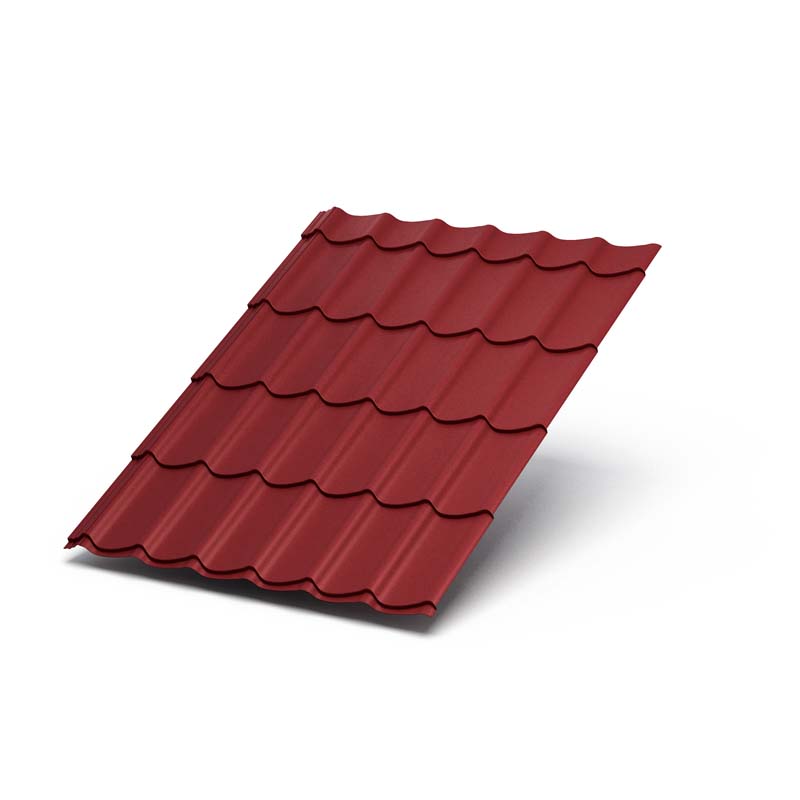 Металлочерепица - легкий и надежный кровельный материал для частного домомтроения, основу которого составляет гибкий стальной лист, который после прохождения процессов цинкования, грунтования, нанесения покрытия, профилирования и резки становится листом металлочерепицы с высокой несущей способностью. Металлочерепица Супермонтеррей: глубинапрофиля 25+21мм, длина ступеньки 350мм, толщина материала 0,4-0,5мм.