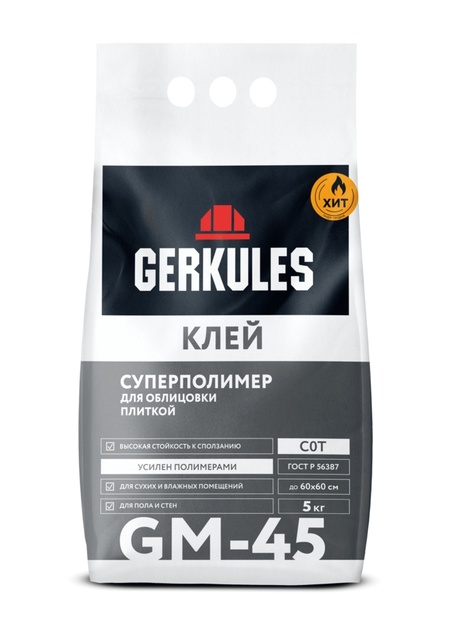 Клей для плитки Суперполимер GM-45 5кг Геркулес/4шт в кор/144