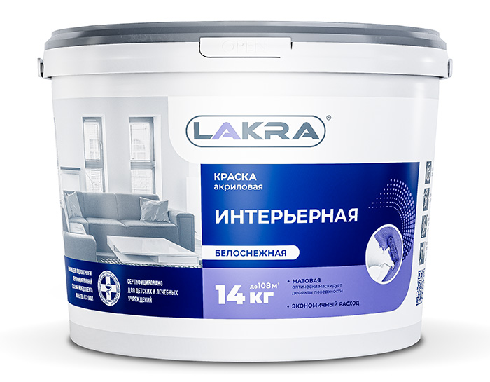 Краска интерьерная белоснежная 14,0кг Лакра