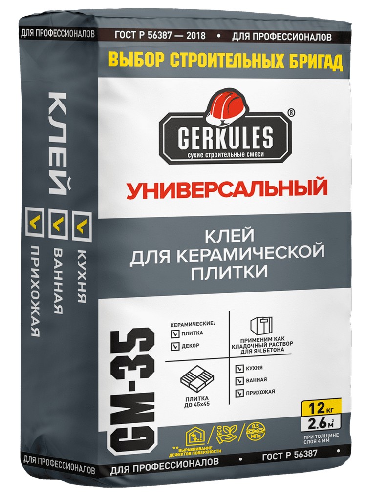 Клей для плитки Универсальный GM 35 12 кг Геркулес/144