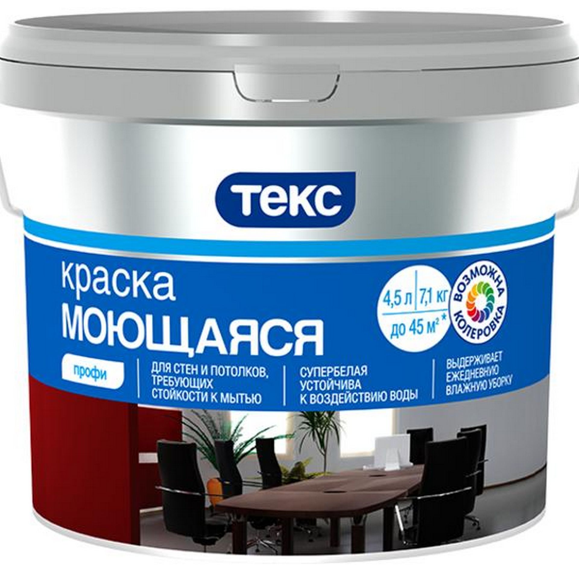 Краска ВД моющаяся супербелая 4,5л/7,11кг Профи А Текс