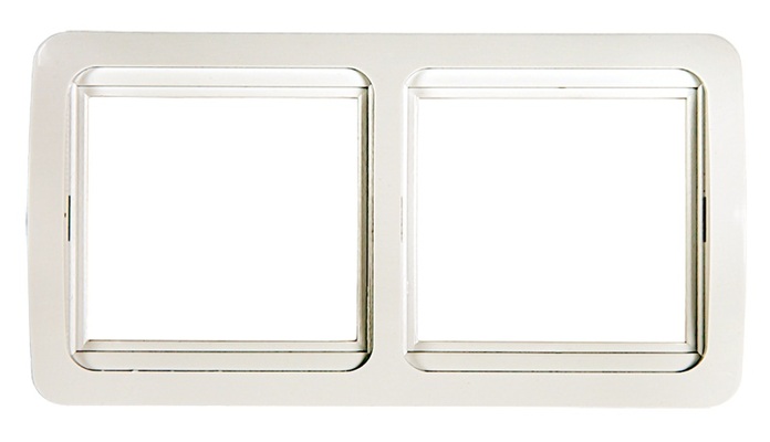 Рамка – универсальный аксессуар для оформления двух розеток или выключателей, установленных с помощью скрытого монтажа. Прекрасно вписывается в современных интерьер, защищает настенное покрытие от загрязнений и при необходимости легко поддается чистке. Изготовлена из прочного, термостойкого пластика. Представлена в белом цвете.