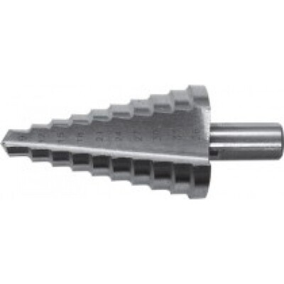 Ступенчатое сверло предназначено для получения отверстий различного диаметра без перестановки режущего инструмента. На каждой ступени есть маркировка фактического диаметра. Сверло изготовлено из быстрорежущей инструментальной стали. Количество ступеней — 13 шт. Ход — 2 мм.
