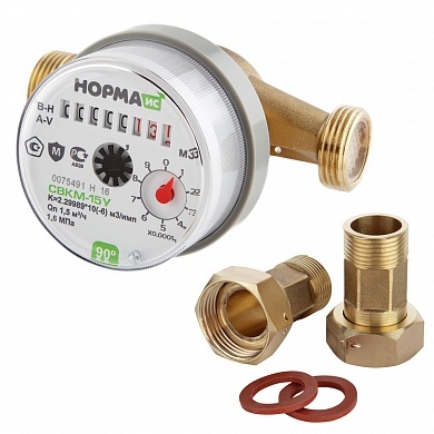 Водосчетчик CВКМ-15 с штуцером и обрат клапан универсал